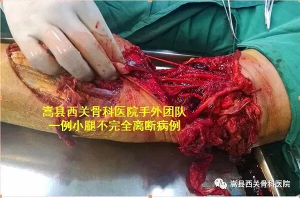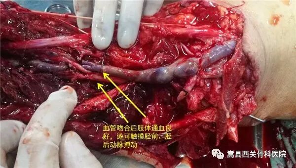 经过六个多小时手术,终于保住了韩某被机械“撕咬”过的下肢,手术过程也是相当惊心动魄,术中发现腘动脉多段断裂,我们用最快的时间做了清创,最短的时间吻合了血管,保证了肢体最短缺血时间!最后给予患肢创伤敷压膜覆盖,外固定架固定,反复观察患肢末梢后,送至监护室。