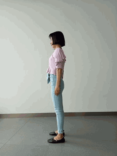 颈椎缓慢向上拔伸,头颈左旋,双眼向后下方尽力望对侧足后跟,达最大幅度时用力拔伸颈部,保持约5秒钟,还原后,另一侧重复同样动作。反复做10次。